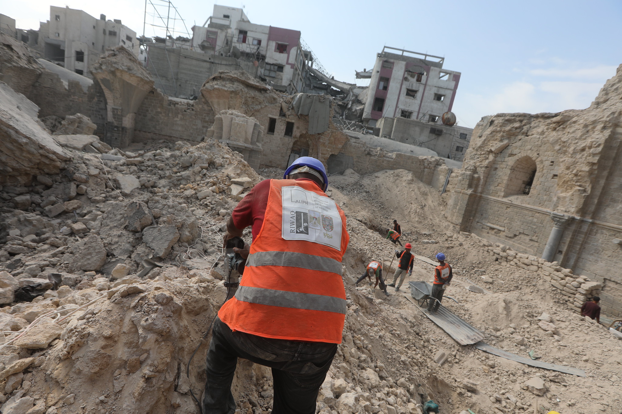The buildings handed over and currently under restoration include the Great Omari Mosque, Al-Qaysariyya Market, Gaza Municipality’s main building at Palestine Square, and Dar Farah.