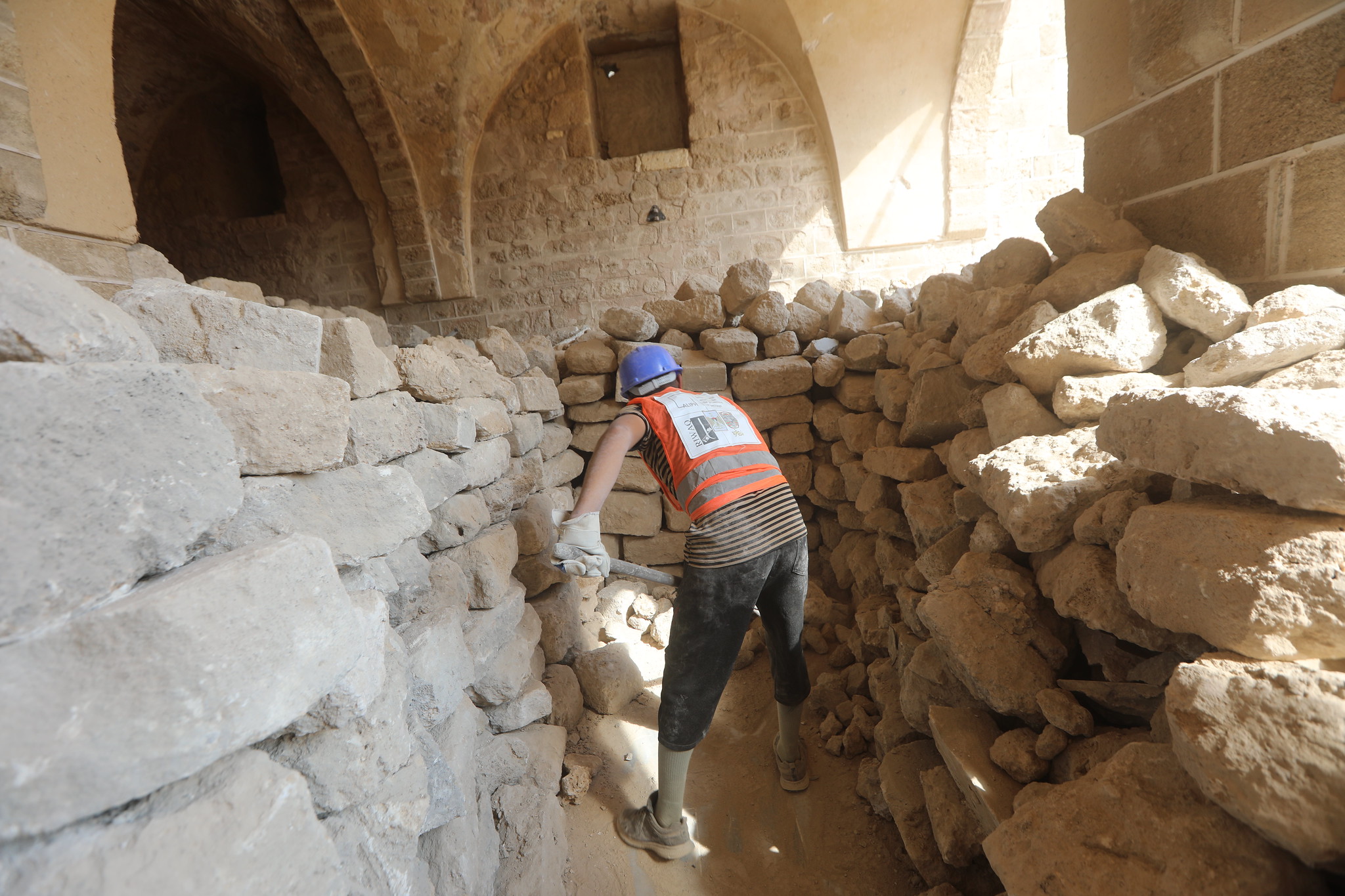 The buildings handed over and currently under restoration include the Great Omari Mosque, Al-Qaysariyya Market, Gaza Municipality’s main building at Palestine Square, and Dar Farah.